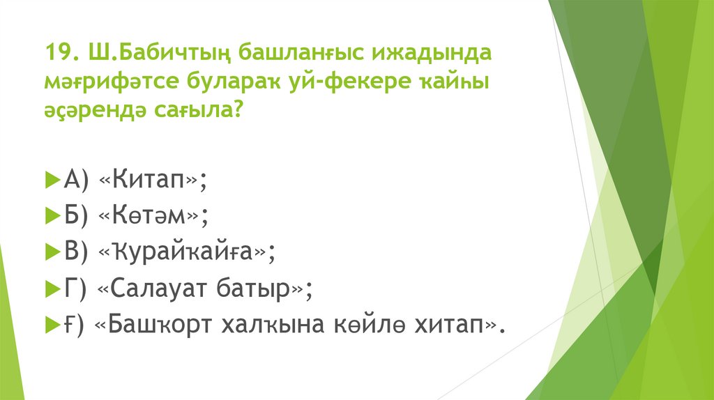 19. Ш.Бабичтың башланғыс ижадындамәғрифәтсе булараҡ уй-фекере ҡайһы