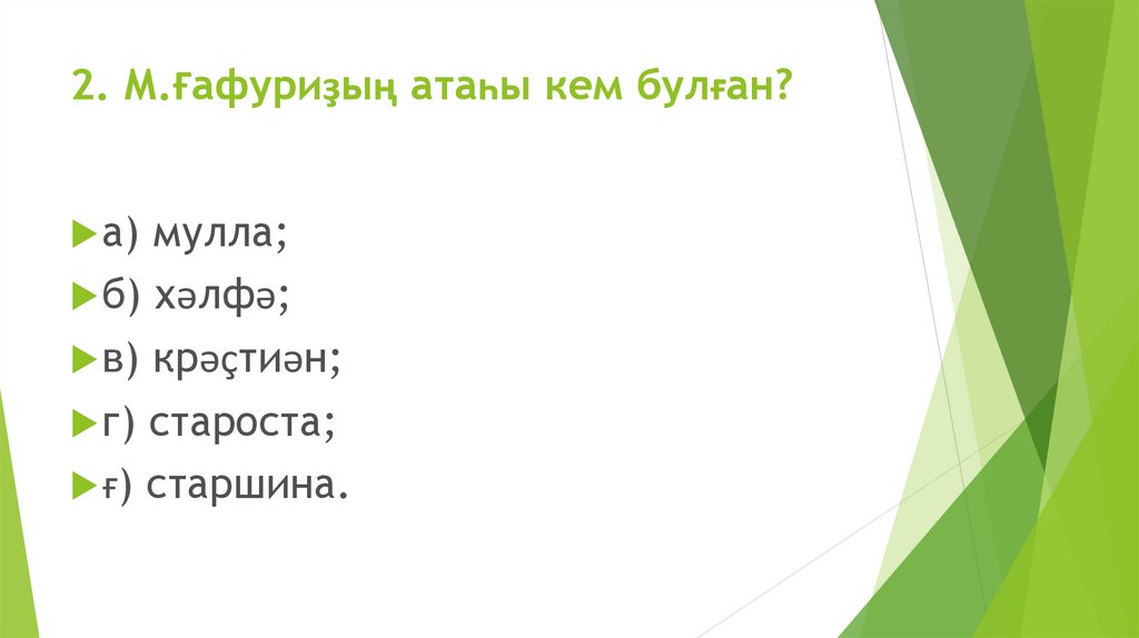 2. М.Ғафуриҙың атаһы кем булған?а)