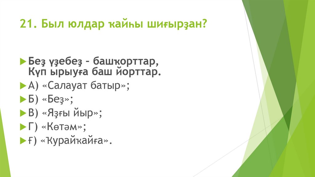 21. Был юлдар ҡайһы шиғырҙан?Беҙ