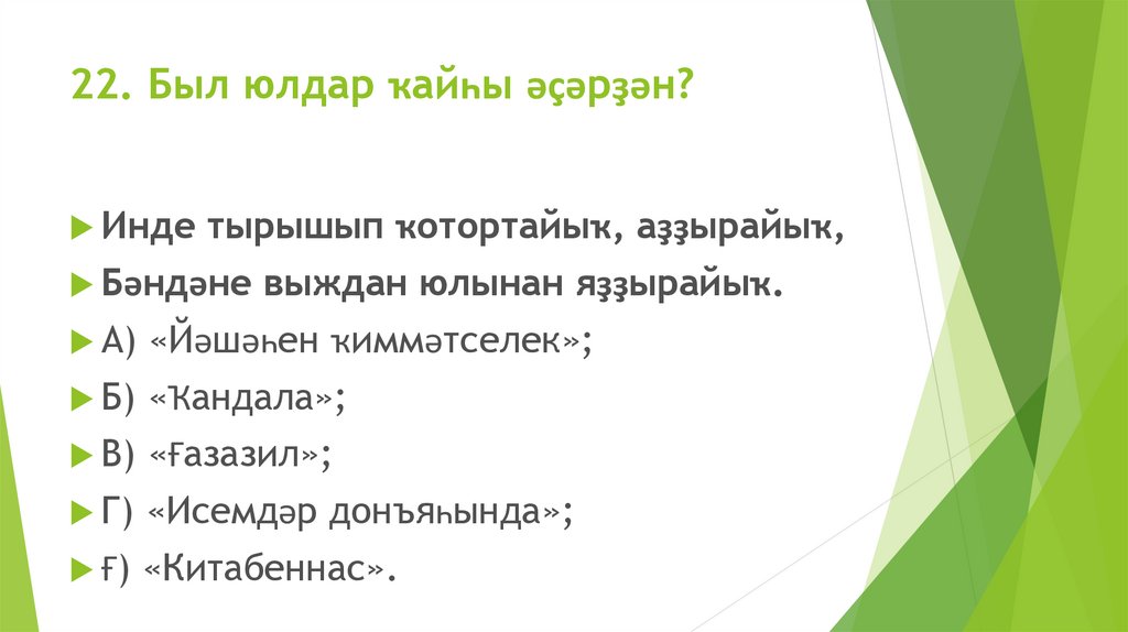 22. Был юлдар ҡайһы әҫәрҙән?Инде