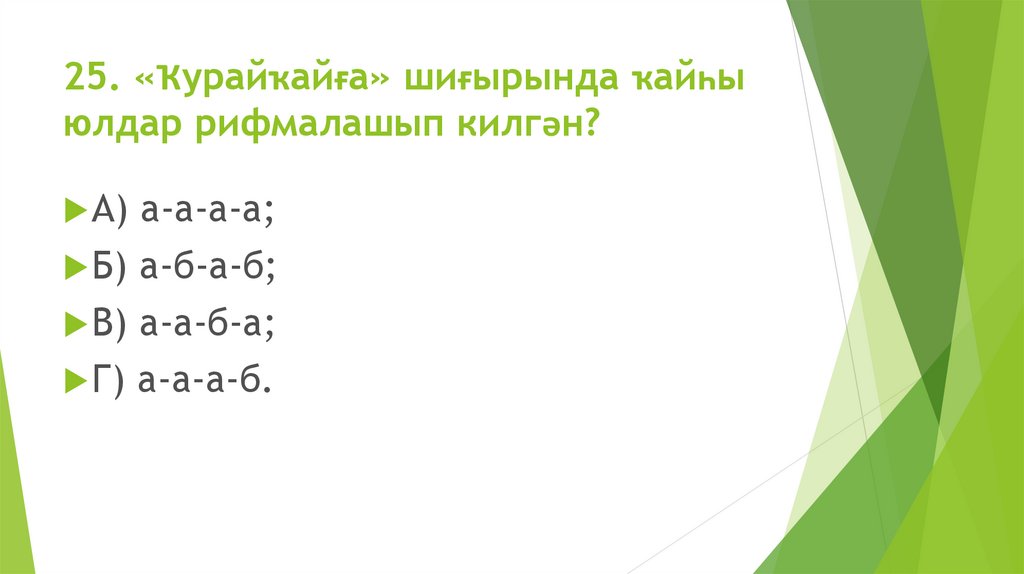 25. «Ҡурайҡайға» шиғырында ҡайһыюлдар рифмалашып килгән?