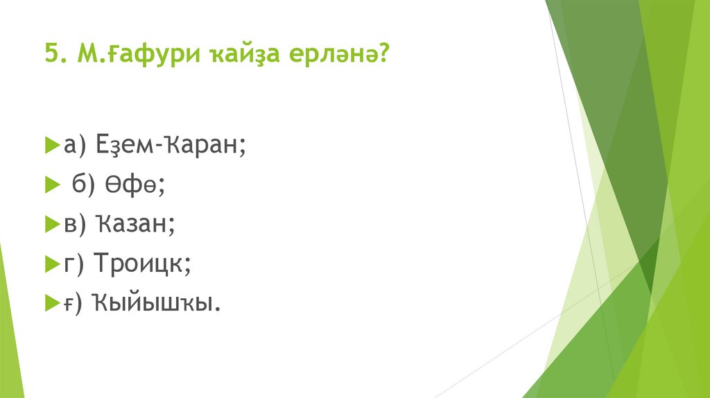 5. М.Ғафури ҡайҙа ерләнә?а)
