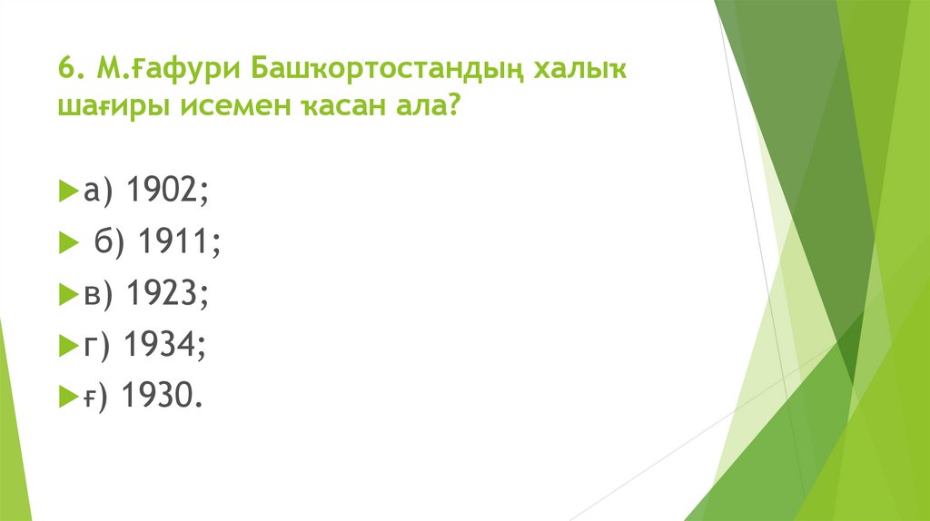 6. М.Ғафури Башҡортостандың халыҡшағиры исемен ҡасан ала?