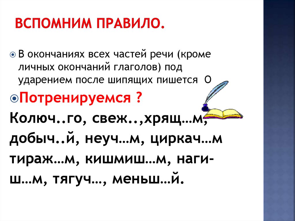ударением после шипящих пишется О