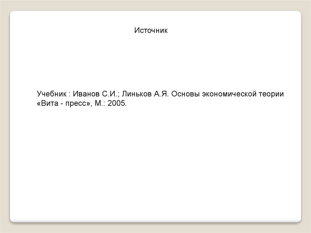 ИсточникУчебник : Иванов С.И.; Линьков А.Я. Основы экономической теории