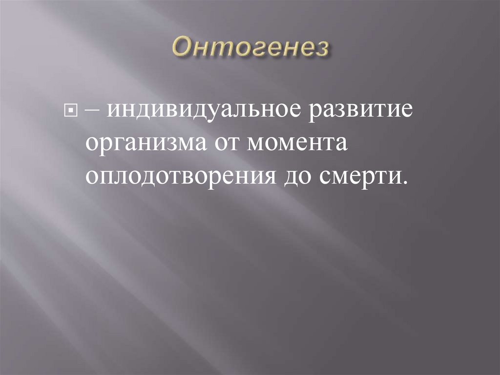 – индивидуальное развитиеорганизма от момента