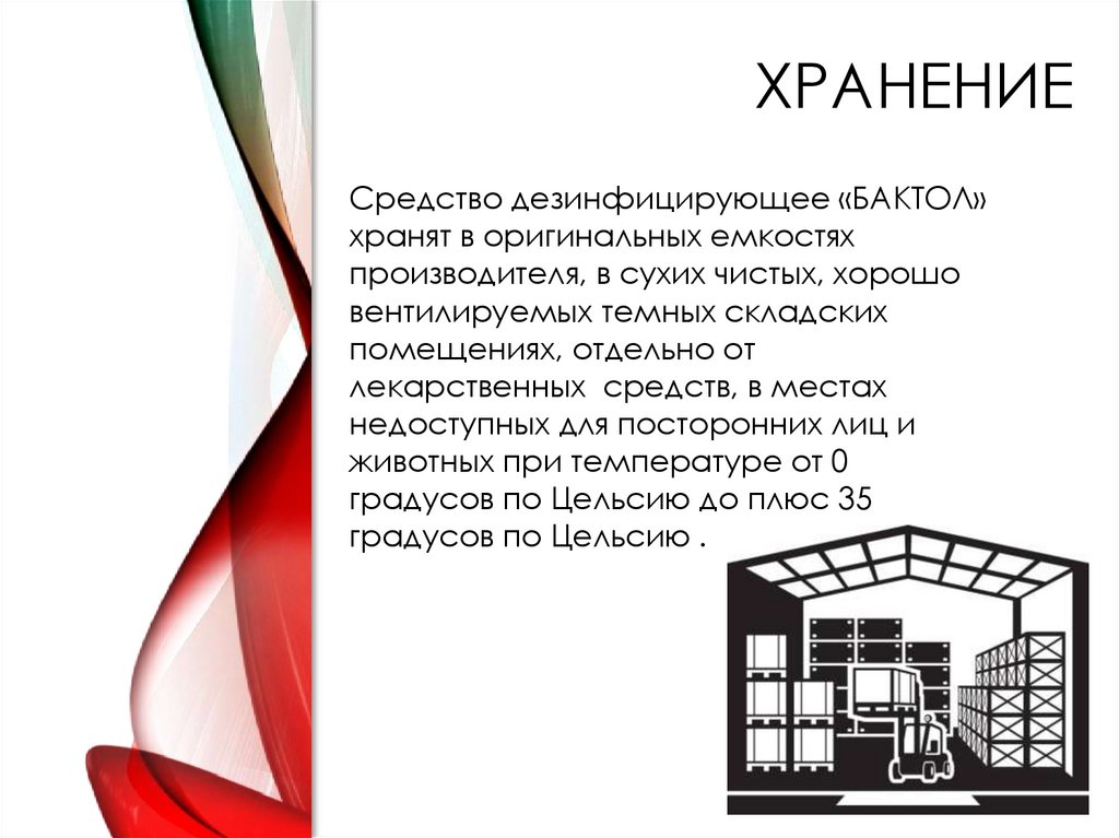 ХРАНЕНИЕСредство дезинфицирующее «БАКТОЛ»