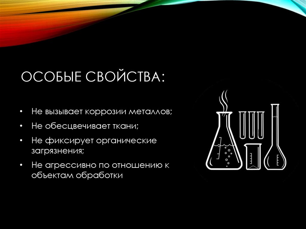 ОСОБЫЕ СВОЙСТВА:• Не вызывает коррозии металлов;