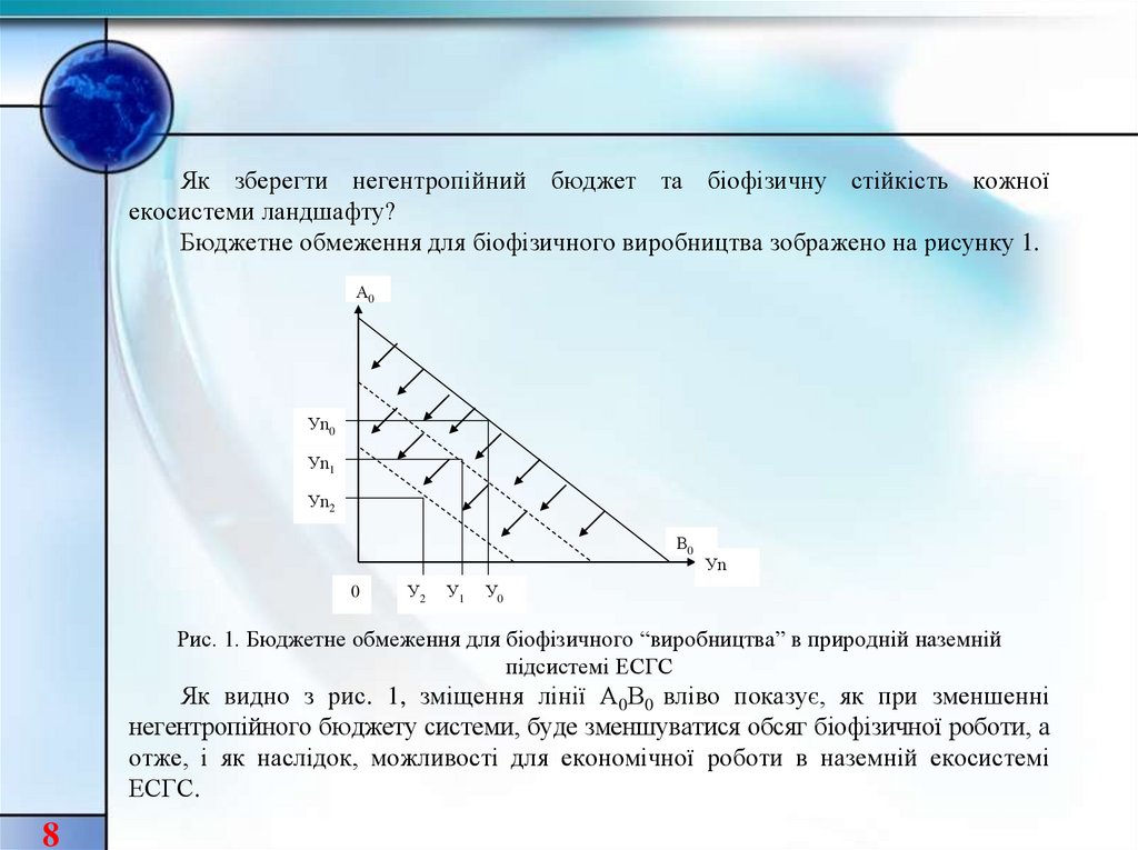 Рис. 1. Бюджетне обмеження для біофізичного “виробництва” в природній наземній