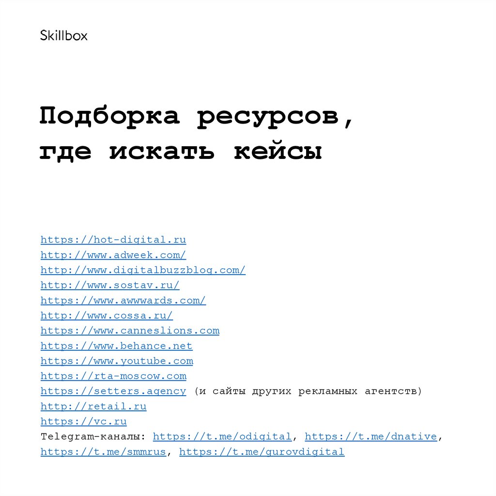 Подборка ресурсов,где искать кейсы