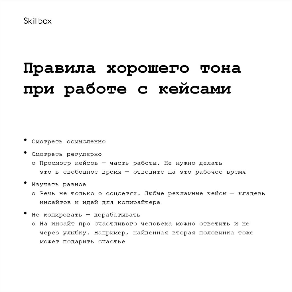 Правила хорошего тонапри работе с кейсами