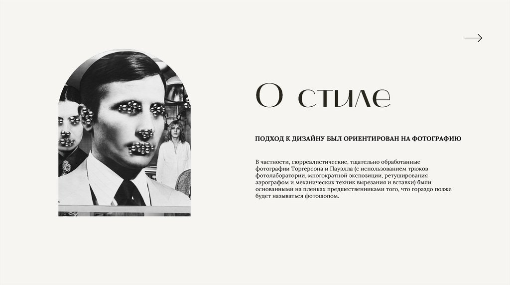 ПОДХОД К ДИЗАЙНУ БЫЛ ОРИЕНТИРОВАН НА ФОТОГРАФИЮВ частности, сюрреалистические, тщательно обработанные