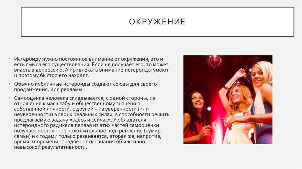 ОКРУЖЕНИЕ• Истероиду нужно постоянное внимание от окружения, это и