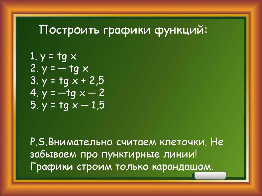 Построить графики функций:1. y = tg x