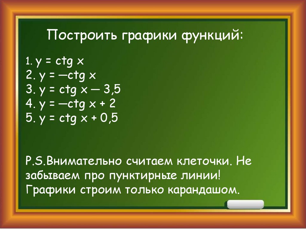 Построить графики функций:1. y = сtg x