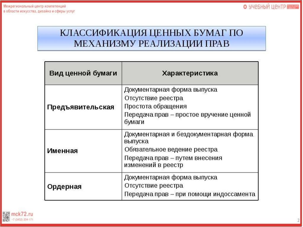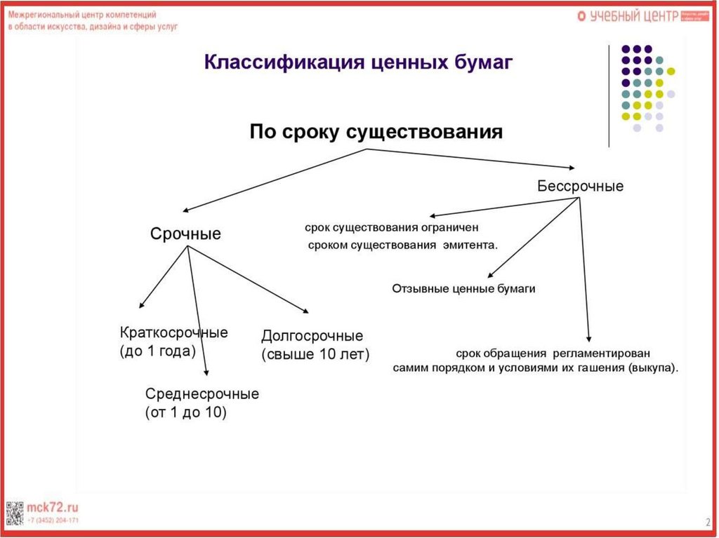• 2. Классифицировать ценные бумаги по сроку существования для