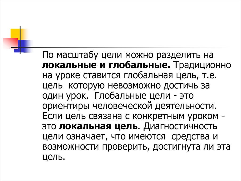 Если цель связана с конкретным уроком это локальная цель. Диагностичность