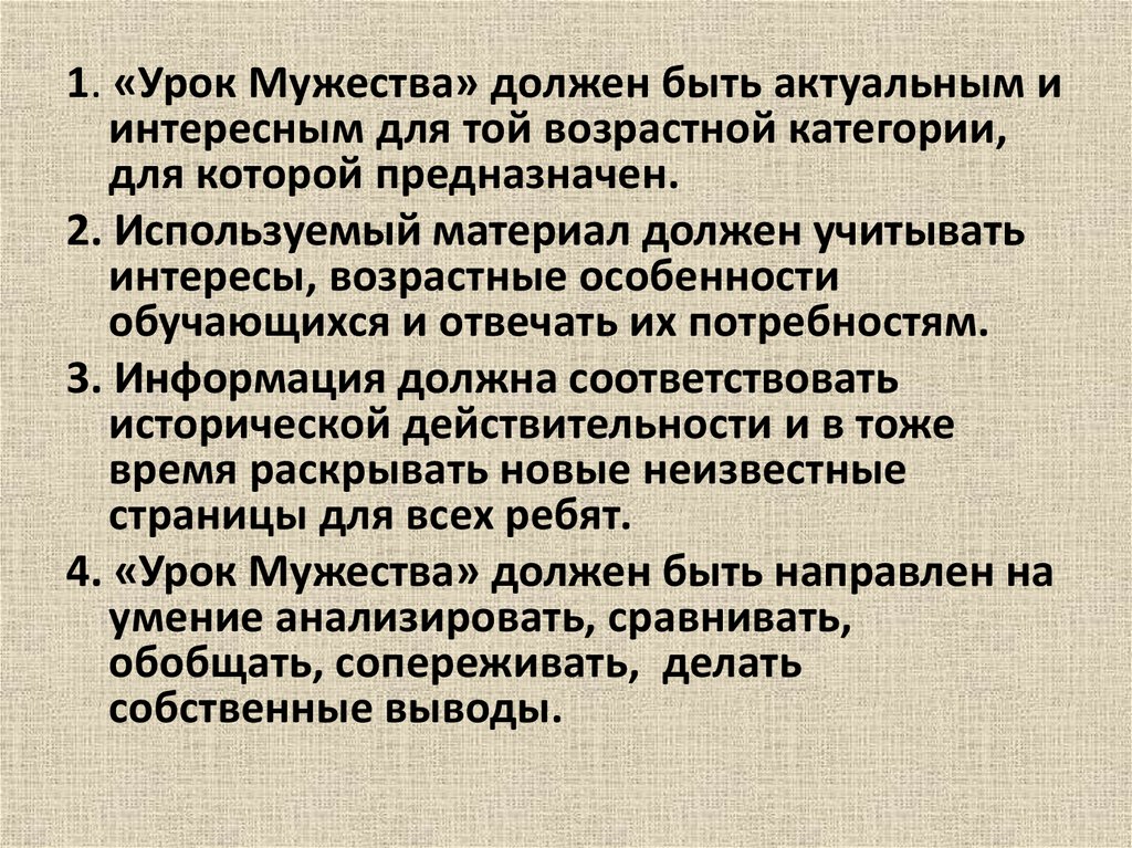 1. «Урок Мужества» должен быть актуальным иинтересным для той возрастной категории,