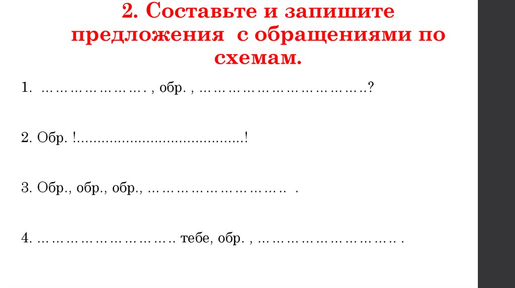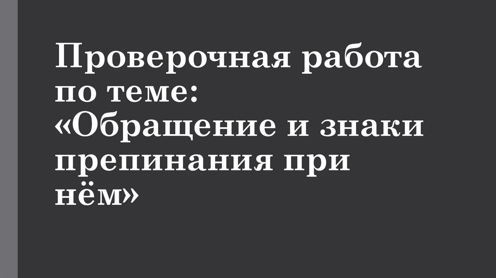Проверочная работа по теме: «Обращение и знаки препинания при нём»