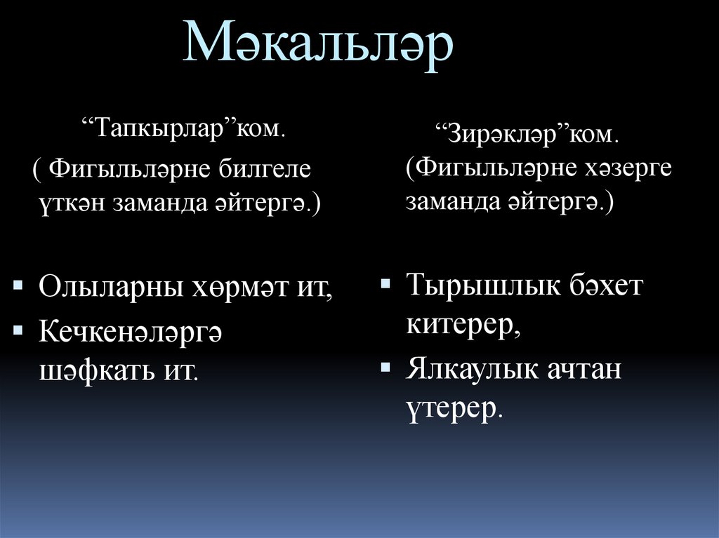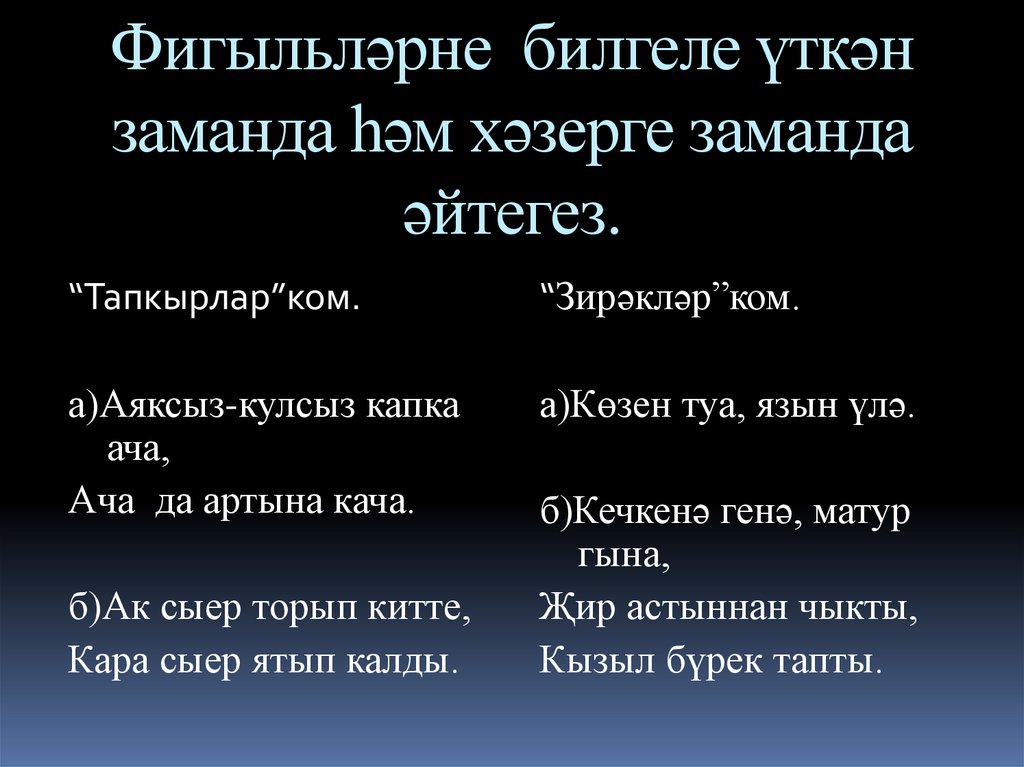 Фигыльләрне билгеле үткәнзаманда һәм хәзерге заманда