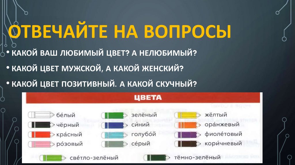 ОТВЕЧАЙТЕ НА ВОПРОСЫ• КАКОЙ ВАШ ЛЮБИМЫЙ ЦВЕТ? А НЕЛЮБИМЫЙ?