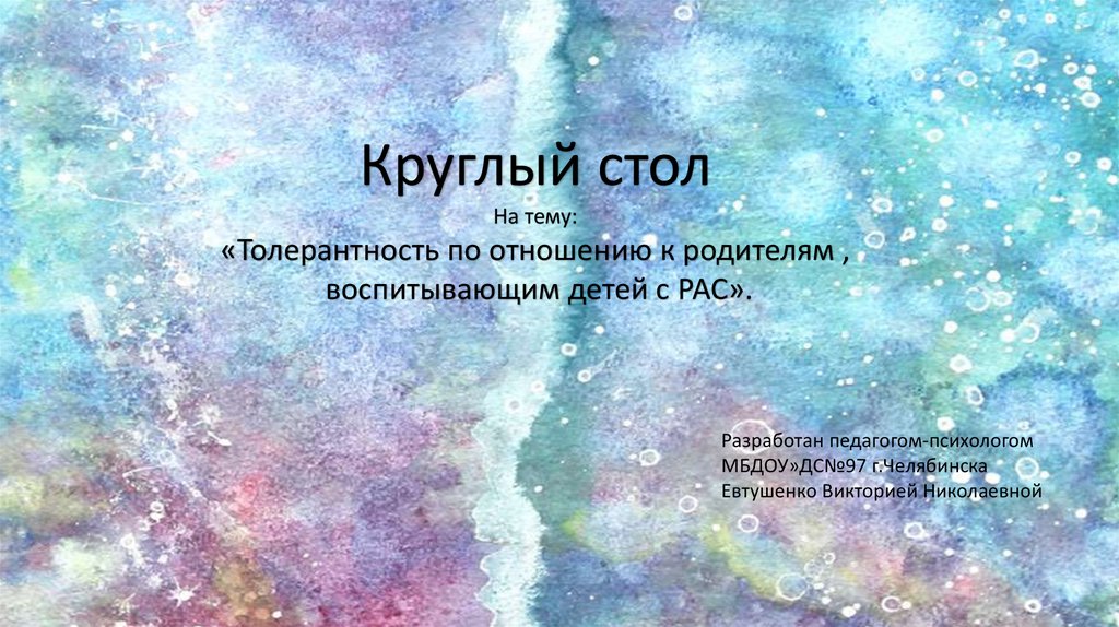 Толерантность по отношению к родителям , воспитывающим детей с РАС
