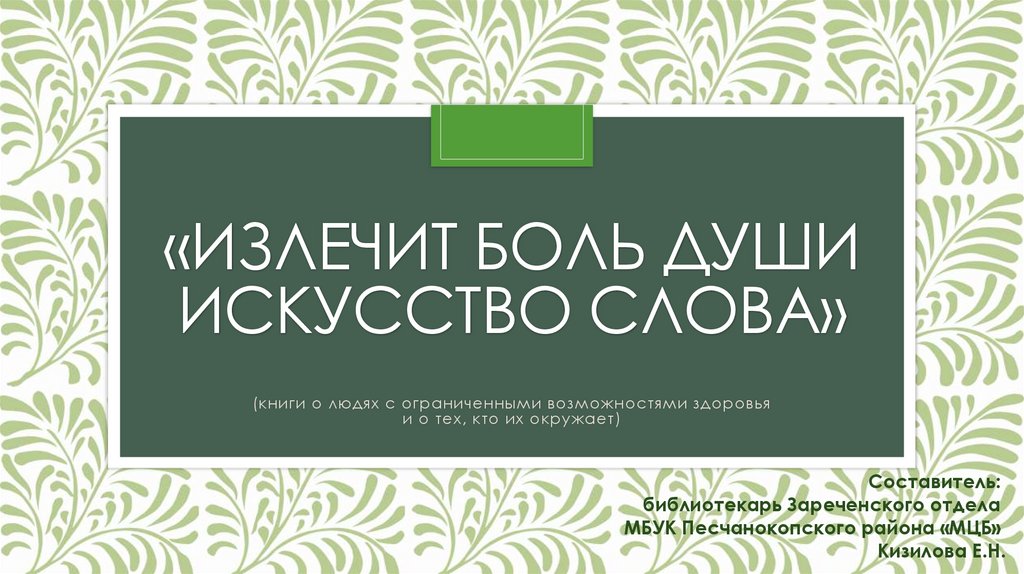 «ИЗЛЕЧИТ БОЛЬ ДУШИИСКУССТВО СЛОВА»
