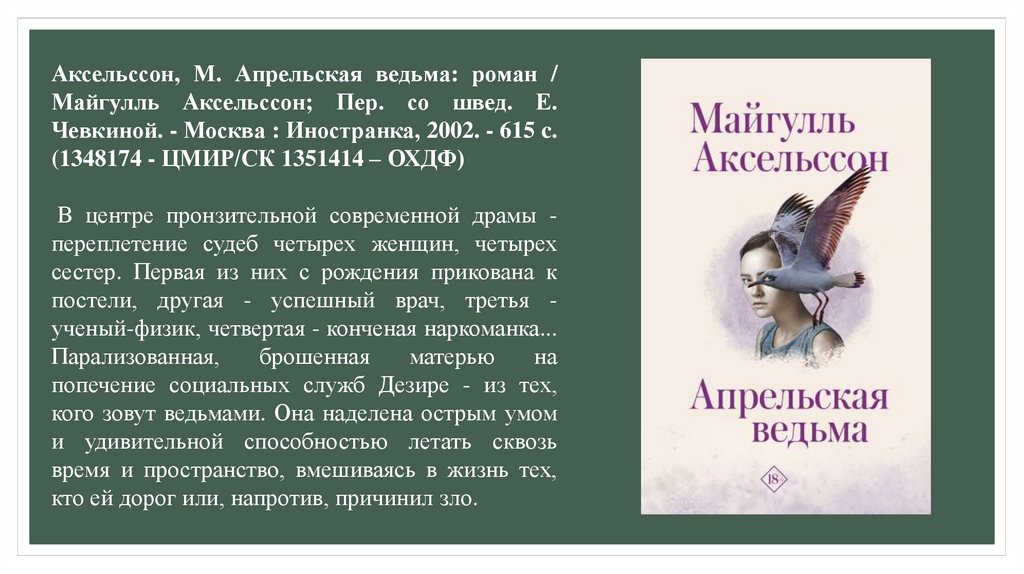 Аксельссон, М. Апрельская ведьма: роман /Майгулль Аксельссон; Пер. со швед. Е.