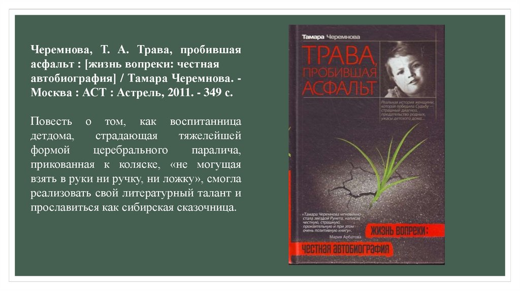 Черемнова, Т. А. Трава, пробившаяасфальт : [жизнь вопреки: честная