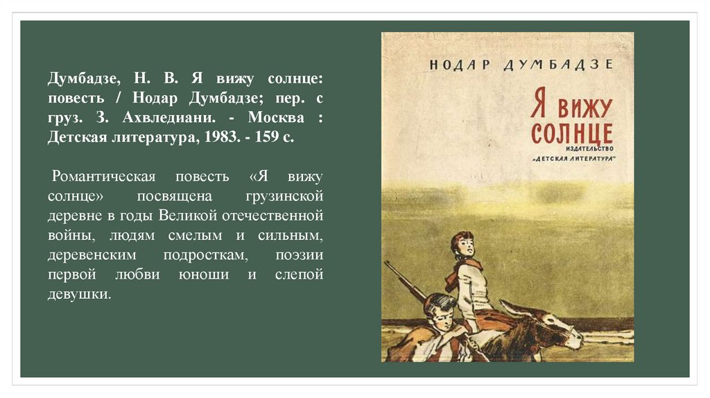 Думбадзе, Н. В. Я вижу солнце:повесть / Нодар Думбадзе; пер. с