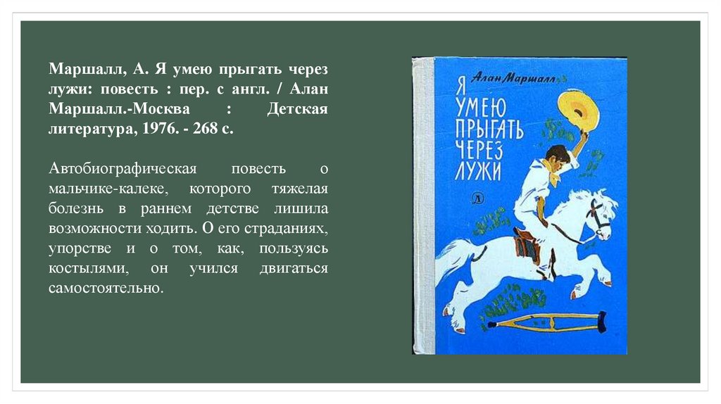 Маршалл, А. Я умею прыгать черезлужи: повесть : пер. с англ. / Алан