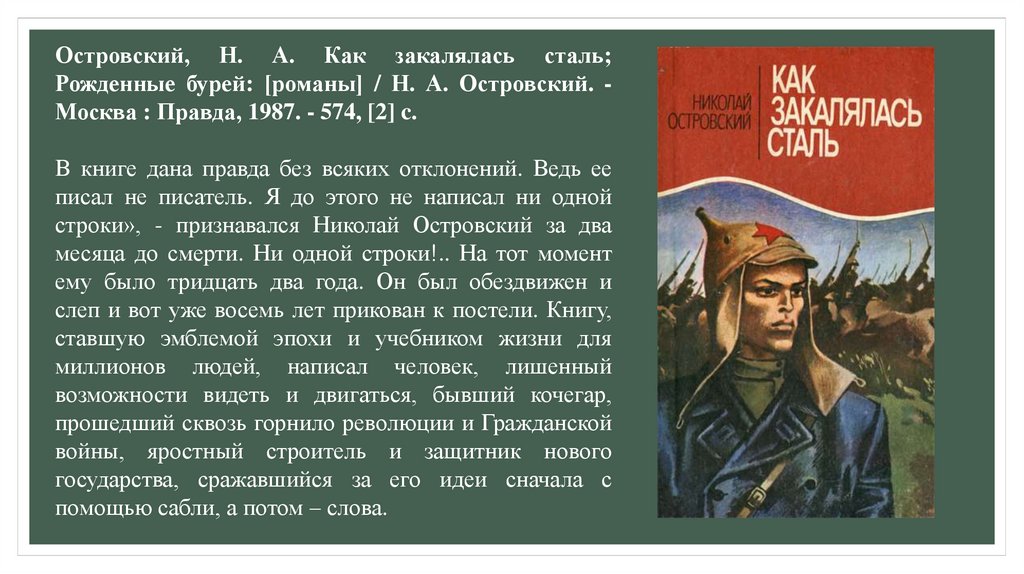 Островский, Н. А. Как закалялась сталь;Рожденные бурей: [романы] / Н. А. Островский. Москва : Правда, 1987. - 574, [2] c.