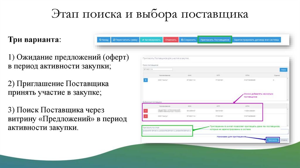 2) Приглашение Поставщика