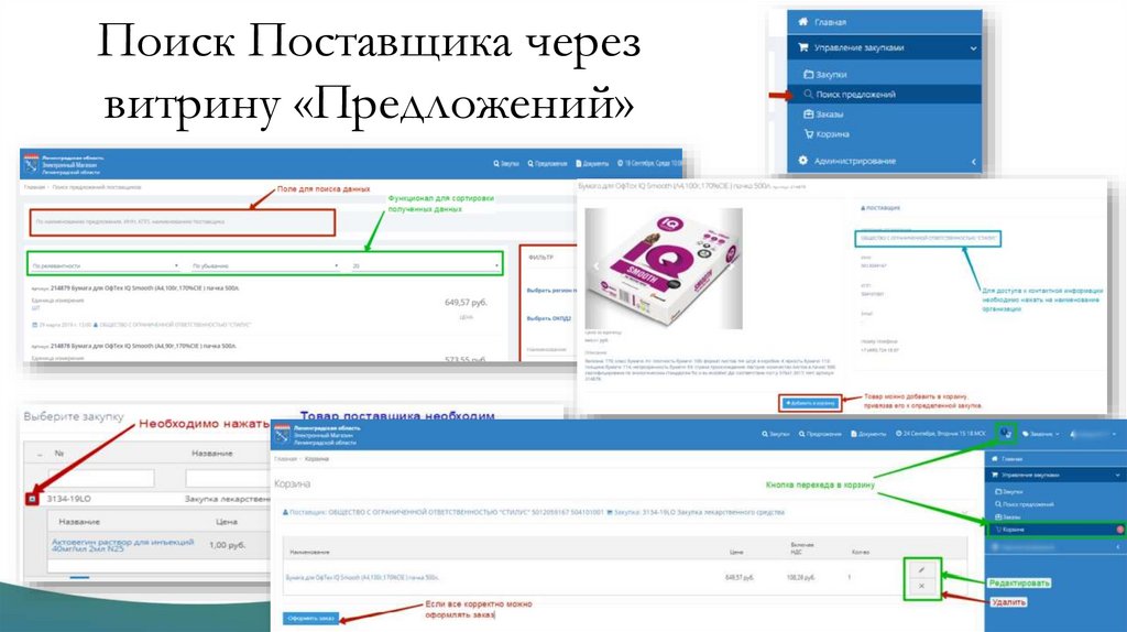 Поиск Поставщика черезвитрину «Предложений»