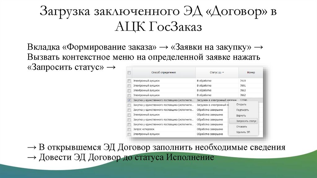 Загрузка заключенного ЭД «Договор» вАЦК ГосЗаказ