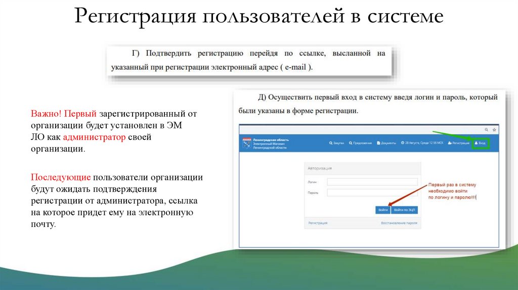 Регистрация пользователей в системеВажно! Первый зарегистрированный от