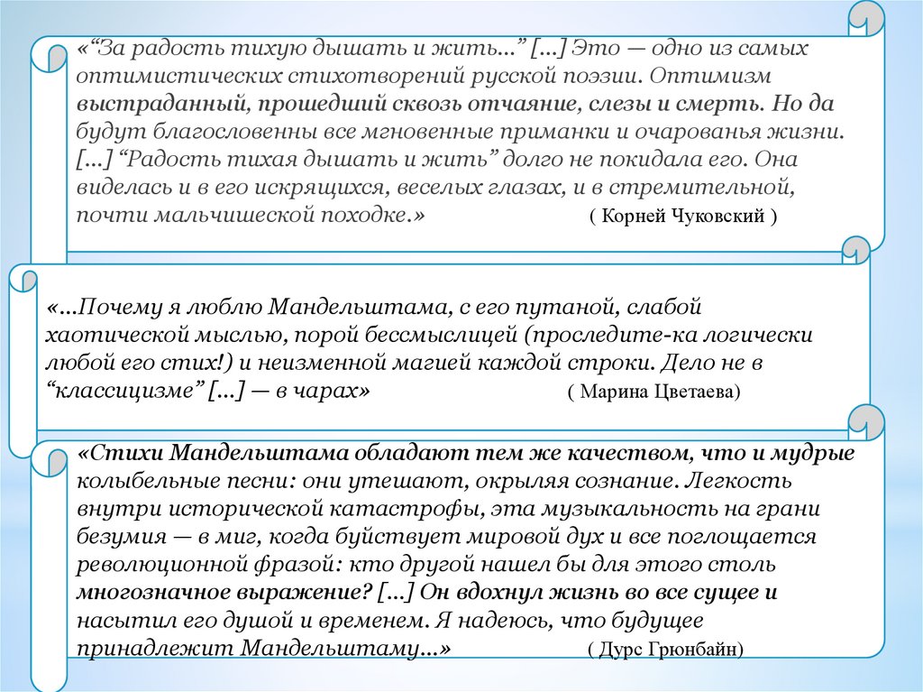 «Стихи Мандельштама обладают тем же качеством, что и мудрые