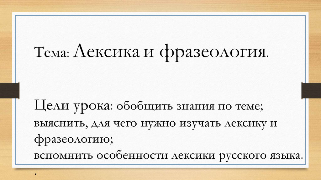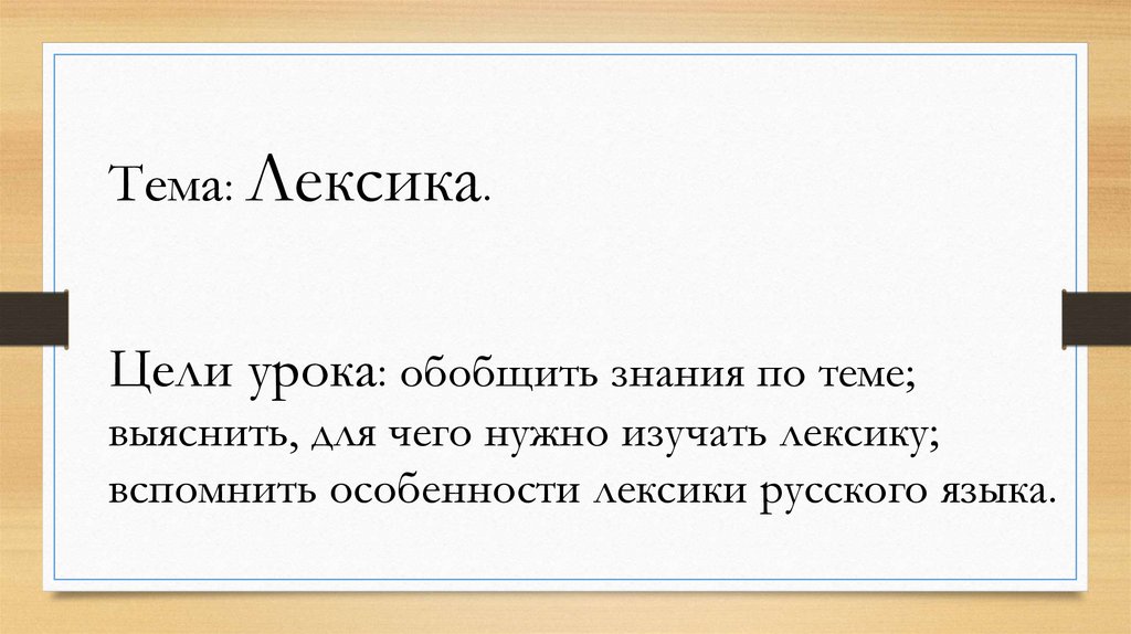 Тема: Лексика.Цели урока: обобщить знания по теме;