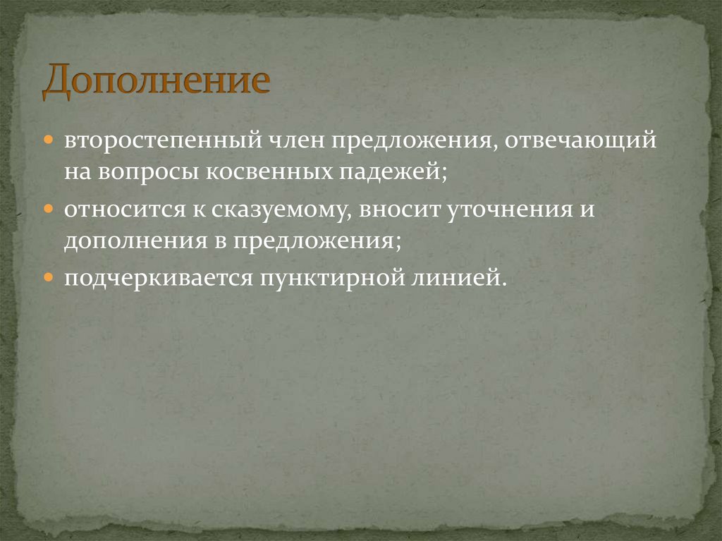 Выясните, что обозначает дополнение.