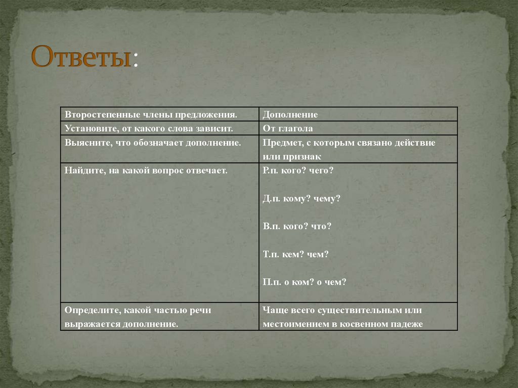 сформировать понятие о дополнении и способах