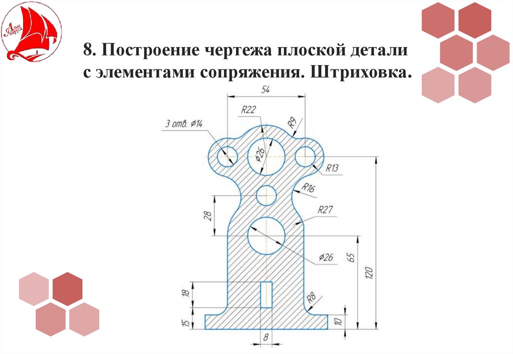 8. Построение чертежа плоской деталис элементами сопряжения. Штриховка.
