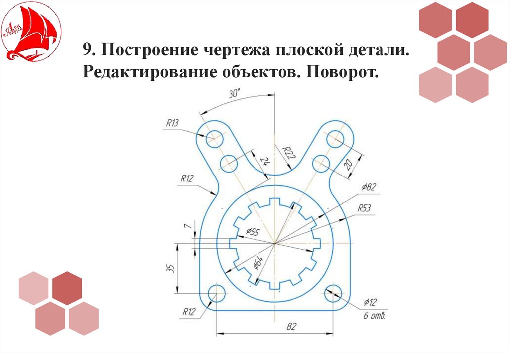 9. Построение чертежа плоской детали.Редактирование объектов. Поворот.