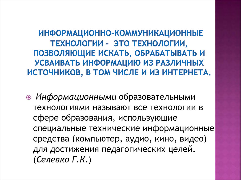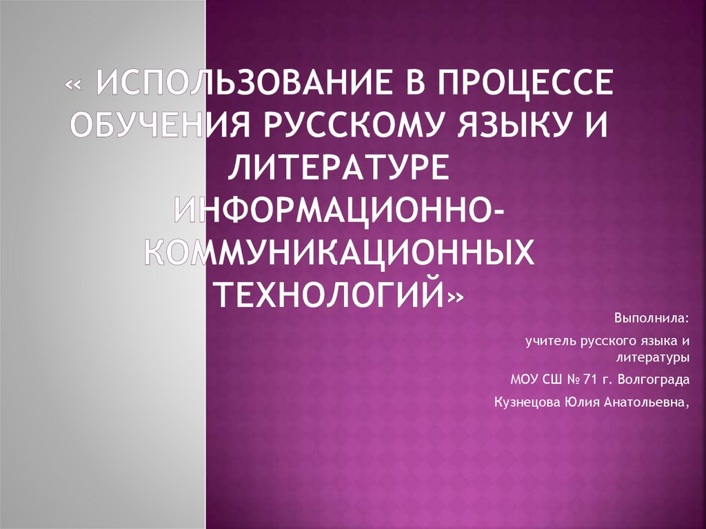 Использование в процессе обучения русскому языку и литературе информационно-коммуникационных технологий