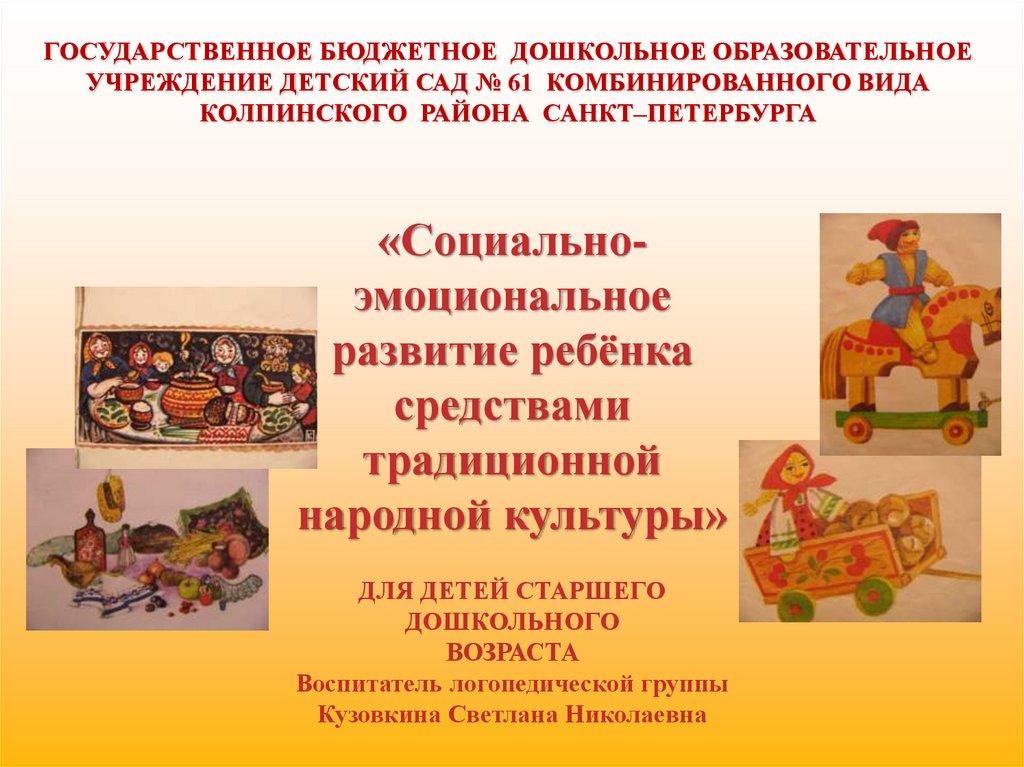 Социально-эмоциональное развитие ребёнка средствами традиционной народной культуры