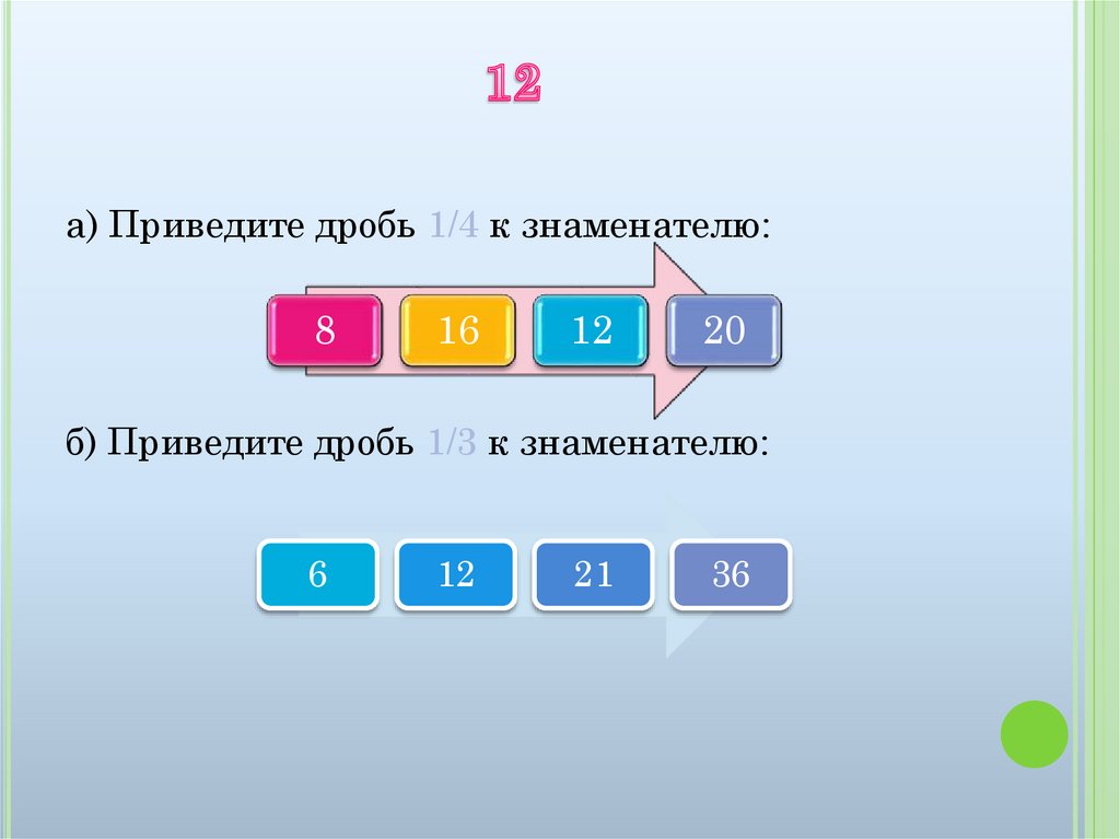 а) Приведите дробь 1/4 к знаменателю:8