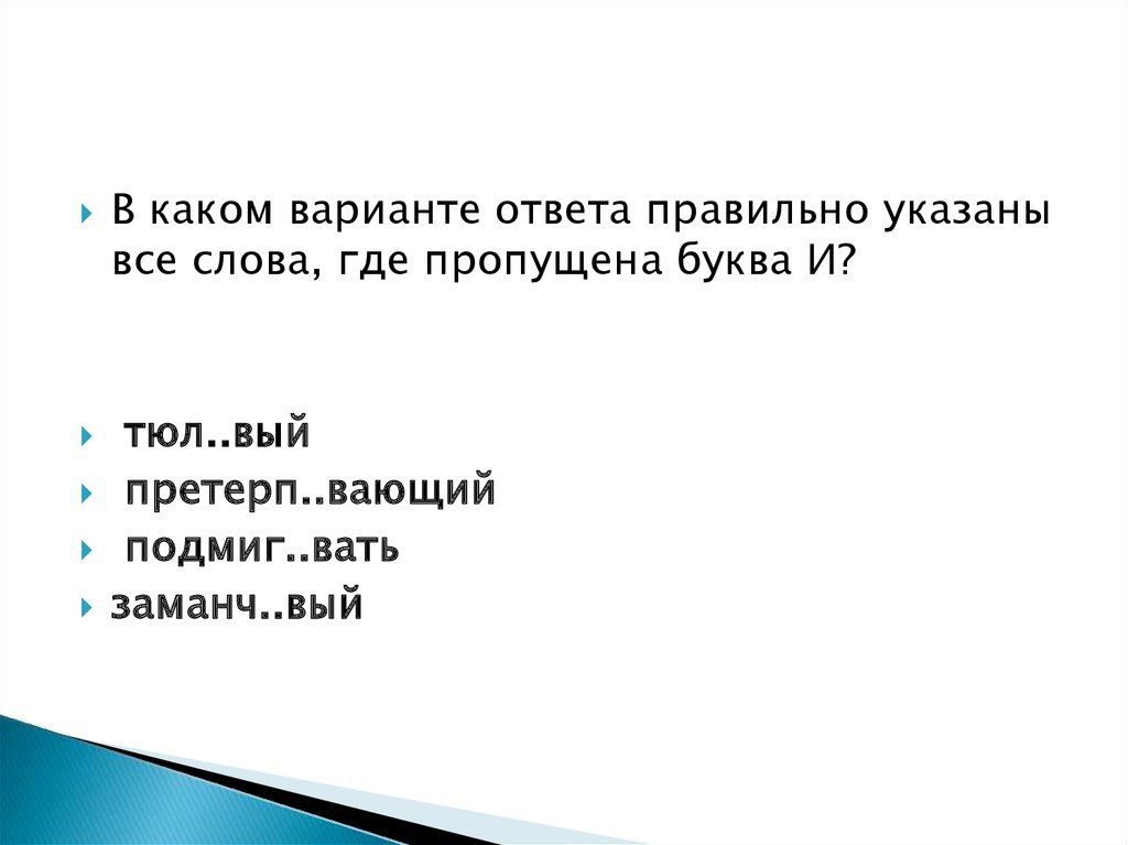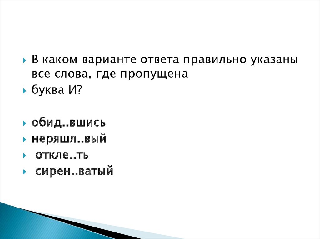 В каком варианте ответа правильно указанывсе слова, где пропущена буква И?