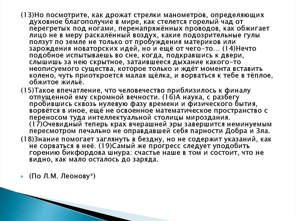 «Проза Л.М. Леонова поражает своей насыщенной образностью итревожной интонацией. Писатель использует тропы: (А)_______ в