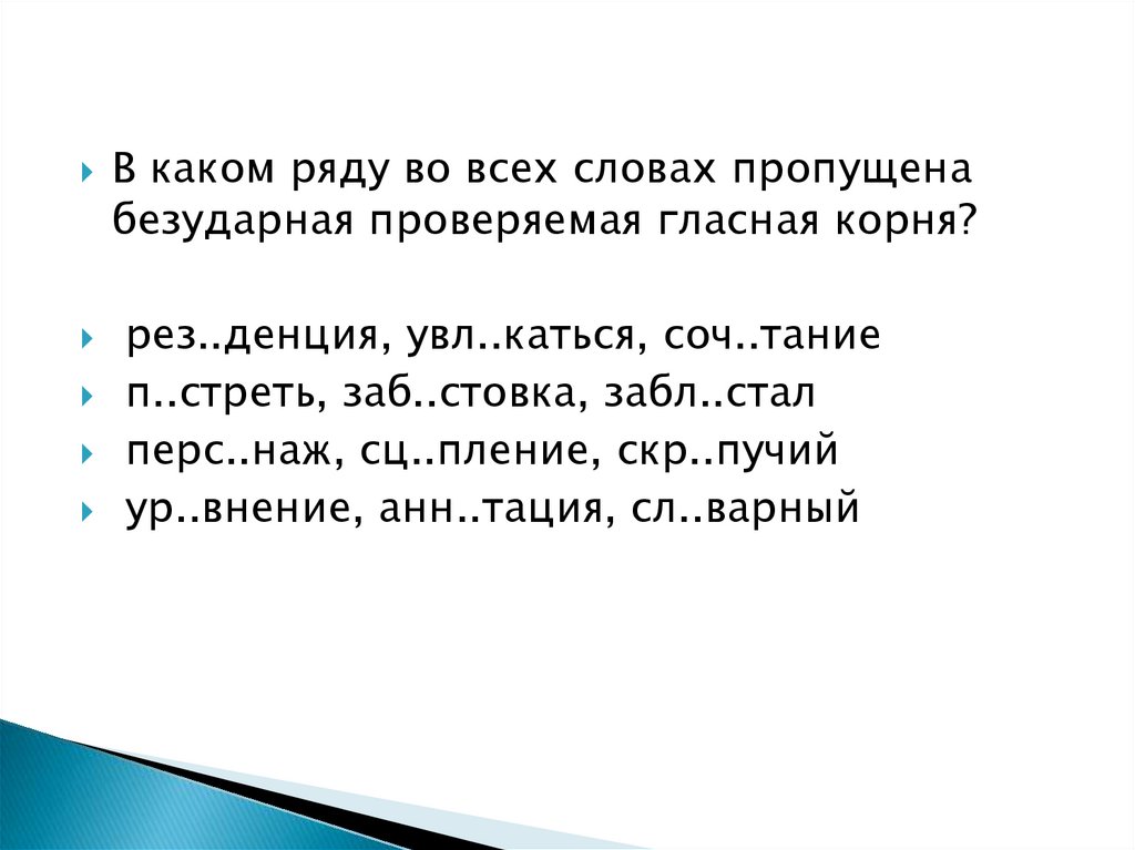 В каком ряду во всех словах пропущенабезударная проверяемая гласная корня?