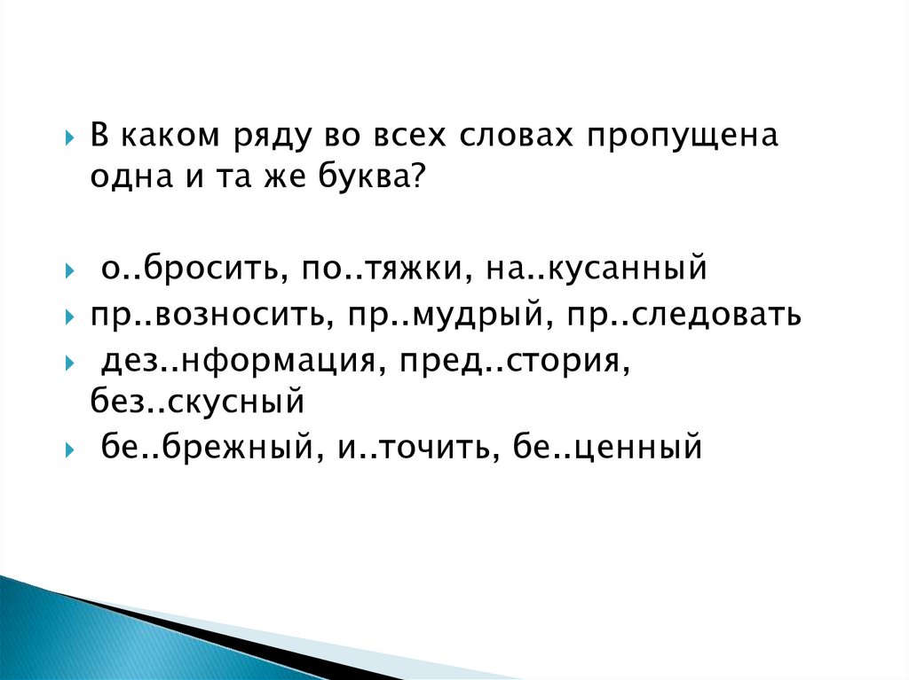 В каком ряду во всех словах пропущенаодна и та же буква?