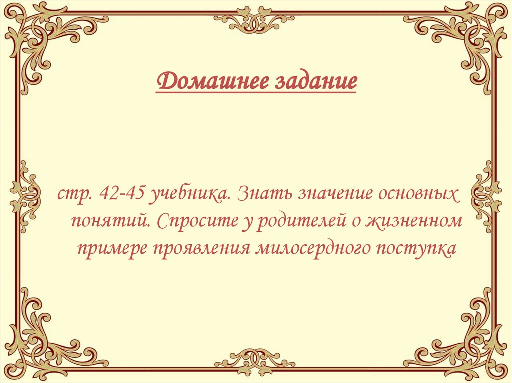 Домашнее заданиестр. 42-45 учебника. Знать значение основных